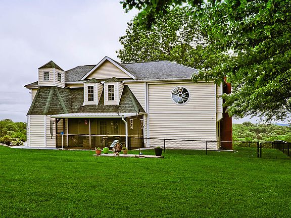 A Beautiful home on 1 acre with 4 bedrooms, 2 full baths and 2 half baths. This home is full of character and makes you feel at home. Main living area features a great room with original hardwood floors, adorned with tall windows to enjoy the country view & Natural light, this room is also open to the second level balcony/bedroom area. Wood burning fireplaces are in the dining room and den/office area. 400 Sq.Ft. basement has been finished and is being used as a media room. Within the last couple of years, seller has installed 2 new heat pump units, new water heater, all new vinyl double pane windows and custom blinds. Special dog pen has been installed outside and some interior walls have been painted. Many unique features!Rural Water will be available soon, Currently shared Well Agreeme