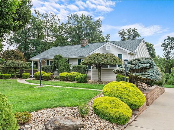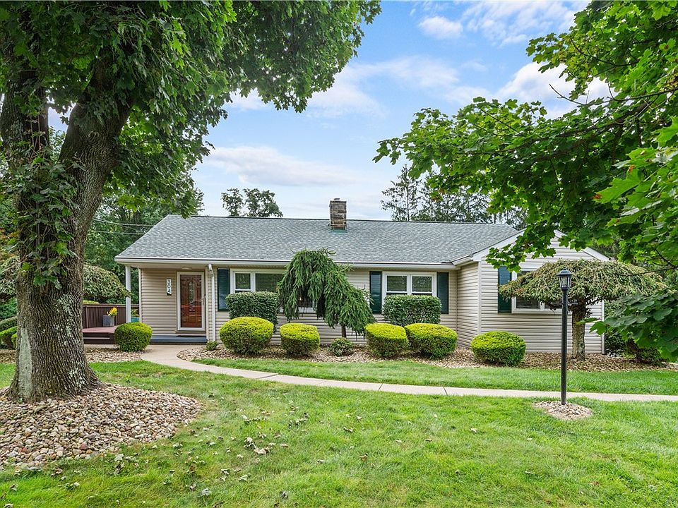 Stunning one of a kind ranch home in Moon Township located on a quiet cul-de-sac. Meticulously maintained with great curb appeal. Entertainer's dream inside and out. Beautiful open floor plan. Great room w/stacked stone gas fireplace and vaulted ceiling w/exposed beam. Large kitchen w/granite countertops, stainless appliances, two breakfast bars and mini Butler's pantry. Spacious living room w/reading nook. Master bedroom w/crown molding. Second bedroom w/half bath. Third bedroom currently used as a fitness room. Full bath w/large vanity. Huge unfinished basement w/full bath and laundry area. So much storage space. Outdoor heaven. Huge 19x16 composite wrap around deck w/retractable awning. Storage shed and built-in garden. Large level private backyard. Peaceful wooded views. Newer roof, electrical, garage doors and appliances. Wired for backup generator. A rare find and a truly great place to call home.