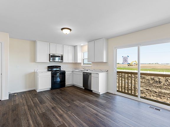 Brand new Arlington two story home for sale by McBride Homes! This two story home has 3 beds, 2.5 baths, and will be move in ready late spring. Beautiful wood laminate flooring featured throughout the main level. Kitchen features level 4 painted white wood cabinetry and stainless steel GE appliances. Glass sliding door in dining area leading to the beautiful backyard backing to common ground. Half wall with stained stair cap at stairway to second level. Master bedroom features a walk in closet, prewire for ceiling fan, and adult height vanity plus walk in shower in master bath. Two additional bedrooms, full bath, and laundry room on second floor. White six panel doors, two car garage, and more! Charlestowne Meadows is located within walking distance to New Town and is included in the Orchard Farm School District. Lawn mowing and snow removal is included with the HOA in this community Similar Home Photos Shown.