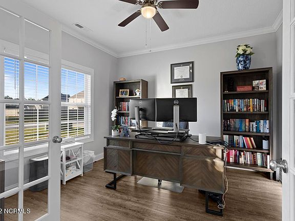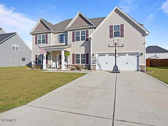 Welcome to Onslow Bay! This 3-year old Haley floor plan by A. Sydes Construction home boasts approximately 3350 heated square feet with 4 bedrooms and 2.5 bathrooms. You will be welcomed into this home with a two story foyer. On either side of the foyer you will find the formal dining room and formal living room with beautiful glass French doors. You will be impressed by the size of the family room with an electric fireplace. Open to the family room is the breakfast area, kitchen with island that also overlooks the keeping room with another electric fireplace! The half bath completes the first floor. Upstairs, you will find the primary suite with a sitting area, large en-suite bathroom with two single vanities, tub, water closet and standing shower. Through the bathroom you will find your massive walk in closet with a custom closet storage system that will be hard to pass on! Bedrooms 2, 3, and 4 are all well sized with plenty of closet space. The laundry room is located on the second floor. Out back, there's a great covered back porch, firepit and bench area and a spacious fenced-in backyard! You don't want to miss your chance to own this beautiful home!