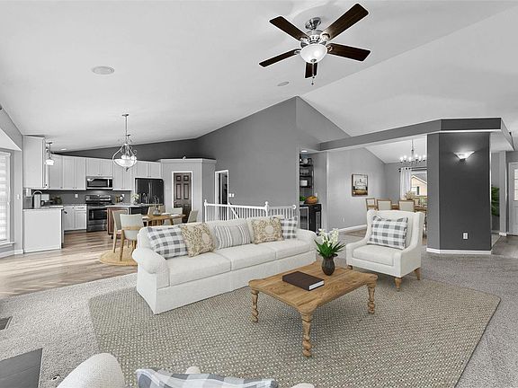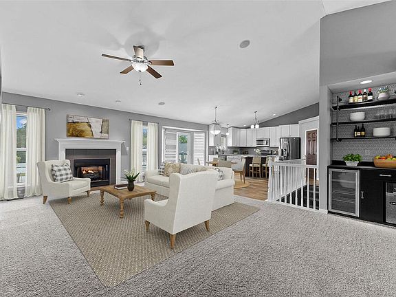 This beautiful ranch w/finished walk-out lower level & fully fenced yard is filled w/wonderful recent updates! BRAND NEW roof, garage door, gutters & partial siding (2024), recently updated HVAC, water heater, windows, sliding glass door, French doors & so much more! Soaring vaulted ceilings in the main living area, including the great room w/gas fireplace & bar w/beverage cooler & wine fridge, & kitchen w/updated 42" cabinets, granite counters, breakfast bar island, walk-in pantry, & SS appliances. Washer, dryer & fridge stay! Spacious primary suite w/board & batten feature wall, walk-in closet w/custom organizer & private bath w/separate vanities. Finished LL is an entertainer's dream, featuring a huge wet bar, stone gas fireplace, theater w/raised platform seating, full bath, office w/French doors, & bedroom w/walk-in closet. French doors open to patio w/pergola & deck. Great location close to I-70/64/61, shopping, dining & conveniences (Rec Center). Outstanding home! See it today!