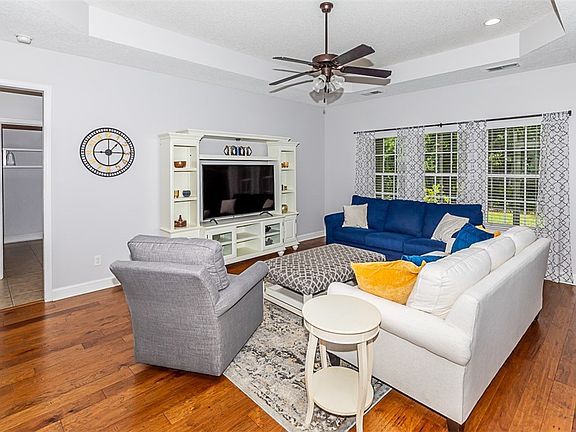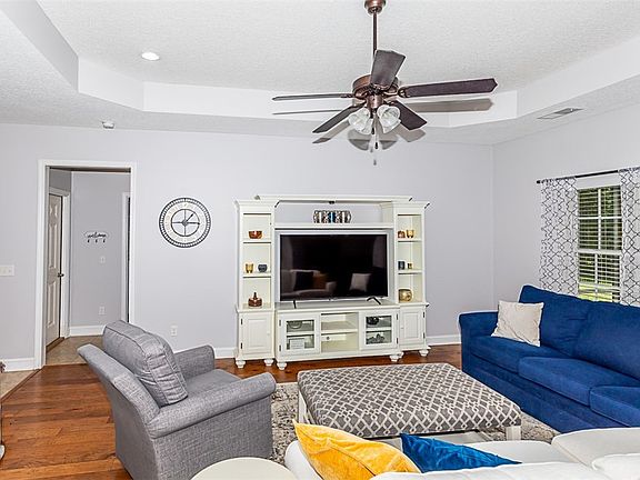 Beauty awaits you in this well maintained 3-bedroom 2 bath home located in Settlers Hammock Subdivision. This one level home has a manicured front lawn and a large fenced back yard with tree line for privacy. The large breakfast area or dining area seats a family of eight. Other features include granite kitchen counters, custom cabinets, stainless steel appliances, high ceilings, engineered hardwood floors in the foyer and great room, tile throughout the Kitchen, breakfast area/dining, bathrooms and laundry room. The split bedroom plan offers a primary suite that has a large walk-in closet and his and her sinks with a separate shower and garden tub. All appliances remain with the home including a NEGOTIABLE washer and dryer. The laundry room has a laundry sink and is directly off the garage for easy clean-up. All of the closets through the home have wood shelving. Subdivision amenities include swimming pool, community room, exercise room and basketball court. The immaculate home is close to the golf course, interstate, shopping and schools.