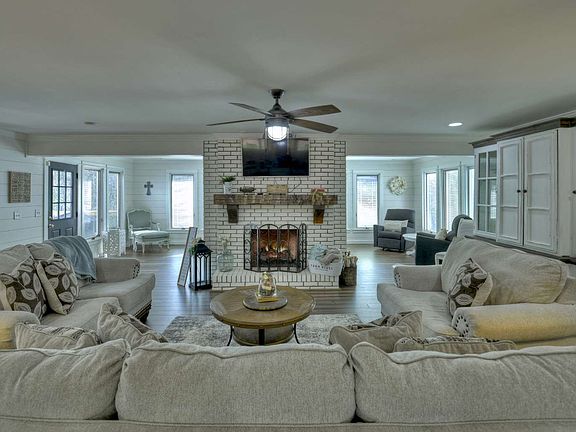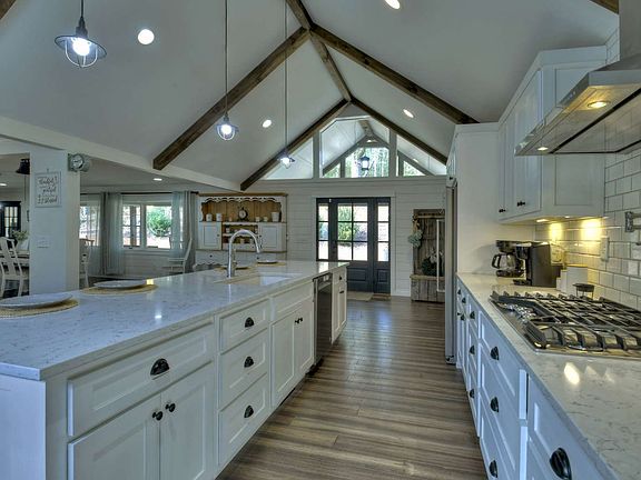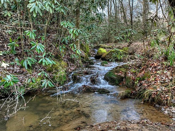 European Farmhouse Feel in the Mountains featuring almost 5,000 Sq Ft.....Built to Last- 4-Sided White Brick w/Craftsman Accents on BIG Acreage (9.3 Acres). Beautifully Landscaped & Designed w/Terraces (Front & Back). 528' of Cascading Little Rose CREEK Frontage w/Shoreline Gazebo, Firepit & Pedestrian Bridge to access Your Acreage Across the Creek. WIDE OPEN Floor Plan w/Shiplap Walls & Fossilized Bamboo Floors. Impressive Kitchen w/Cathedral Ceiling (WOOD beams) Wall Ovens, Solid Surface Counters, Gas Cooktop w/Pot Filler & Huge Entertainment Island w/seating for 6.Centerpiece Brick Fireplace between Living Rm & Sun Rm (Quality Crank-out Windows). Huge Dining Space w (2) Bay Window Extensions. Master Suite w/Trey Ceiling, Tile Showers (frameless door), Tile Floors, Double Vanity Marble Tops & Slipper Tub (Waterfall Faucet). Another Guest Bdrm Suite on Main Flr. 2 Car Attached Garage. Upper Floor w/Dormer Windows/Ceiling Lines, Open Sleeping Loft +(2) Guest Bdrms & Full Bath (Tile). Walk Out Terrace Level w/Bonus Rm, Billiard Area, 2nd FULL-SIZE Kitchen, (2nd) Huge Dining Area, (2) Guest Bdrms, Jack & Jill Bath (ALL Tile & Marble). Paver Patio w/Arbor & Stone Slab Steps Leading to Level Shoreline along Rose Creek. Long Driveway Approach for a Very Private Setting.Copper Soffit, Facia & Gutters