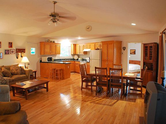 - Exterior: Porch, Wooded Lot, Deck, Garden Spot, Fence, Wrap Around Deck, Firepit Area
