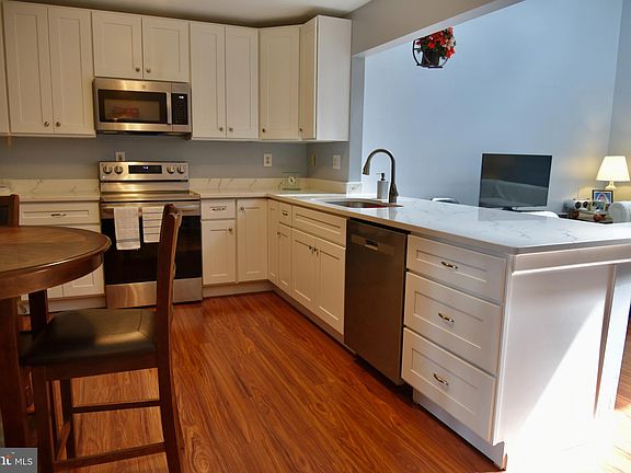 Pleased to offer this lovely townhouse with a unique and open floor plan, ready for you to move right in! It has been recently updated to include a new kitchen with quartz countertops, new stainless steel appliances, new flooring and freshly painted throughout. This beautiful kitchen is open to the living room which features a vaulted ceiling with skylights making this area so nice and bright. Also featured is a spacious 1st floor bedroom with a full bath, walk-in closet and opens to a covered porch with steps that go to a patio with a small raised paver perimeter. All this will provide you a welcome spot to sit and relax as you look out over the rather large backyard. Upstairs is a versatile floor plan that includes a very spacious room that could be a bedroom or an office. There is also an area that could be utilized so you could have a bedroom AND an office! A full bath and a walk in closet nicely completes this second floor. Another unique feature is the laundry hook ups - you have the choice to either have it on the main floor or in the basement. The basement is large, providing lots of storage. Mechanicals have been well maintained, there is CA and the furnace is only 2 years old. Located in a quiet neighborhood with the community park and pool just down the street, we welcome you to your new home!