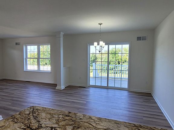 Quick delivery new construction home with four bedrooms, two and a half baths, full basement, garage and pond view, now available by award winning Lenape Builders in the popular community of Centerville. This beautiful community has open spaces, sidewalks and street lights. It is nestled in the town of Smyrna, with nearby amenities like Lake Como, Garrison Lake, Big Oak Park, tax free shopping, restaurants and historic Main Street. At first glance your new home has a lush sodded front lawn, stone masonry highlights along the watercourse and garage, and a welcoming front porch. At the front door is a side transom window to let in additional light and a convenient coat closet in the foyer. Luxury vinyl plank flooring starts in the foyer and runs throughout the main level. The sizeable great room and dining room are at the back of the home and offer views of the pond. The dining room has a slider to the rear deck. The spacious kitchen is every cook’s dream with long granite countertops, stainless steel appliances including microwave and dishwasher, breakfast bar overhang, recess lighting, and soft close cabinets and drawers. There is a huge walk in pantry, next to the laundry room. There is also a powder room that finishes out the main level. The large owner’s suite has a substantial size walk in closet and another closet at the bedroom entrance. The owner’s bath has comfort height double sink vanity, walk in shower with seats and a linen closet. There are three more bedrooms, two with walk in closets and a hall bath on the second floor. The full basement with egress window is ready for your customization. There is also a garage to keep your vehicle out of the weather. In addition there are double hung windows and a central vacuum. The home is walking distance to Sunnyside Elementary. Don’t miss out on this beautiful home, book your tour today!
