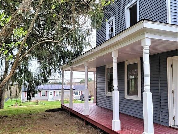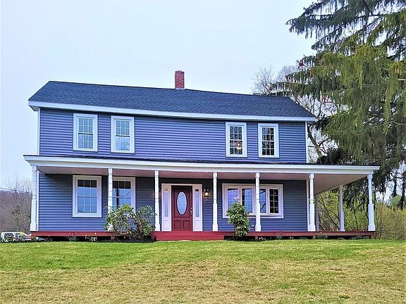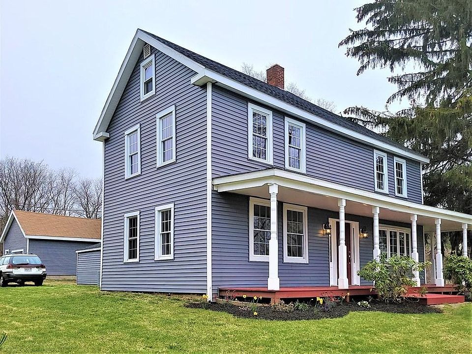 Unique Colonial Farmhouse with wrap-around farmers porch. Situated on a spacious lot in sought-after Dudley. Main entrance is stunning with hardwood staircase to 2nd floor or the cozy stone fireplace living room. Wide open kitchen with new granite countertops and appliances. 4 large bedrooms, two full bathrooms all with new and or existing ceramic tile or laminate flooring. Stunning main bedroom with full bath on the first floor. 2nd bedroom is on the first floor as well. Spacious first-floor laundry. New heating system with central A/C. New roof, siding, insulation, windows. New septic system with passing Title V. Conveyed with all appliances. A truly remarkable home, this is an opportunity to own a picturesque farmhouse while enjoying a host of modern amenities. Before you enter the door, youll find an oversized triple garage - perfect for a workshop and fleet of cars. This will not last.