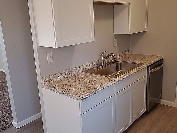 Very nice 3 Bedroom home on corner lot, remodel completed in 2020, painted inside and outside, new interior doors and trim installed including closet doors, new kitchen cabinets, sink, faucets, lighting, ceiling fans, new dishwasher, microwave, gas stove. New wood look tile installed in kitchen and pantry, new tile installed in bathroom, new carpet installed in bedrooms and living room. New 2"plantation blinds installed in bedrooms. Lease with option to buy available through owner.