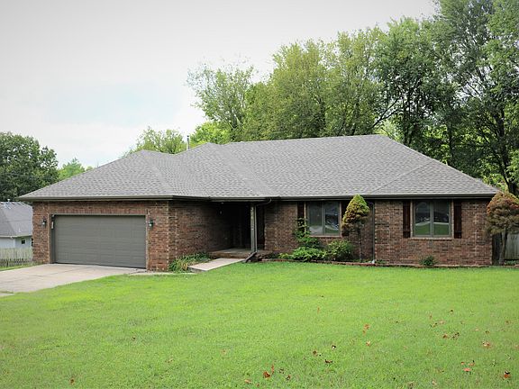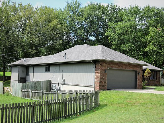 Do you need two kitchens for some serious cooking? This home has it. Ideal location in Southwest Springfield just outside city limits. New roof and gutters just installed. Home sits on a large 1/3 acre lot. The front of this home is all brick with wood sides and back. Large living room with gas fireplace and tray ceiling. All three bedrooms are large in size. Master has dual vanity sinks, two closets, walk-in shower, and it's own door to the backyard. Kitchen has plenty of oak cabinets for storage, pantry. gas stove, and newer stone countertops. Stone countertops were also added to both bathrooms. Large laundry room with cabinets. Second living area has vaulted ceiling with stairs leading to the lower level. The basement room was used as a bakery and is set up as a full kitchen. It would also make a great setup for a dog grooming business or hobby room with its own entrance/exit outside. Home has generator backup. Backyard is fully fenced with deck and patio spaces for outdoor entertainment and large mature trees for shade. Also has double gates to be able to pull trailers through to store.
