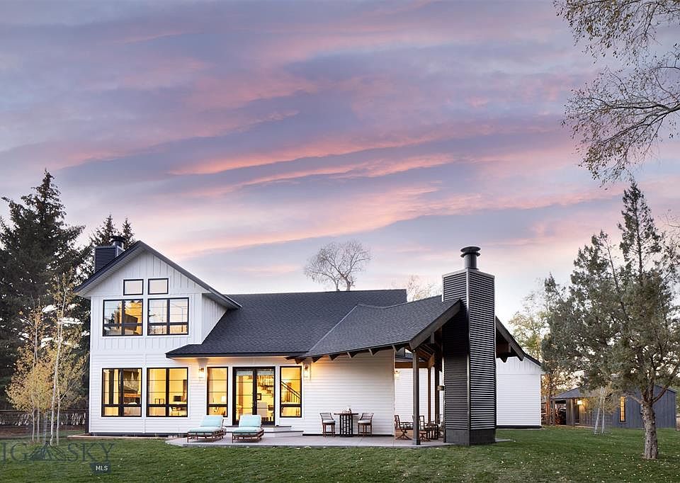 Taking advantage of the nearby Madison River views, this home has interior designs by an award winning designer and has been featured in Mountain Living Magazine and the Wall Street Journal. The two-story main home has open plan living downstairs and a master suite encompassing the entire second story. The luxury kitchen features honed Colorado Yule marble, generous storage, and a top of the line appliance package with 48" refrigerator and 48" professional range with dual oven, 6 propane gas burners and a griddle. The main living area has a dining table which seats 10 and features a custom steel fireplace surround and reclaimed wood beam mantle. The property has four bedrooms (master/king bed, guest/king, a third bedroom being used as a study and one in the cabin/queen bed). The lot has a large back patio with outdoor fireplace and a river view. The landscaped lot has underground sprinklers and a fully fenced backyard. Furniture and decor available for purchase outside of the listing.