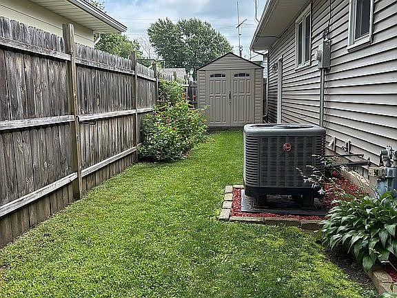 The backyard has a garden/flower bed, established asparagus patch and a small shed.