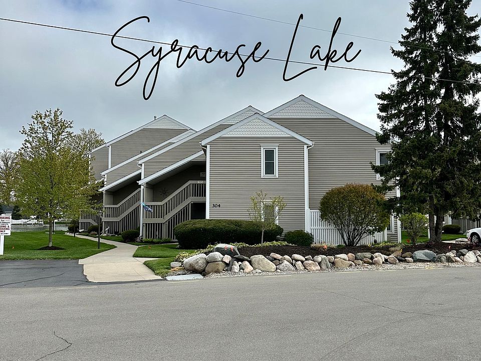Wonderful and updated ground floor condo on Syracuse Lake. Enjoy stunning lake views from Living Room, Screened Porch, and Master Bedroom! Open concept floor plan includes primary bedroom with ensuite bath, guest bedroom and another full bath. Newer stackable washer and dryer. Condo is being sold mostly furnished. Condo includes slip for boat with easy access to the lake along with garage space for water toys. Enjoy 3 gathering areas on the piers - watch boats, watch the sunset or jump in the sandy bottom lake for a swim. Can also walk to sand bar. Pet friendly. Prime location on SW Trail, can walk to parks, restaurants, shops. Syracuse Lake is a clean, all sports lake w/ picturesque views & good fishing. Don't let this one slip away!