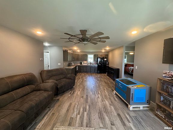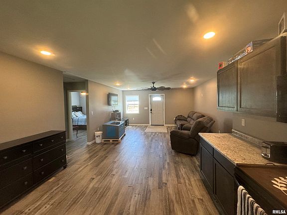 New Home built in 2023!!! This 1200 square foot 3 bedroom 1 bath home sits on just over an acre, down a quiet dead end street in Keenes. This beautiful home has metal siding & a metal roof that will provide maintenance free upkeep for years to come. The home has a beautiful light gray LVT vinyl flooring throughout the home. The living & kitchen has that open concept feel that everyone desires right now with can lighting & a gorgeous ceiling fan. The large eat in kitchen has black shaker style cabinets which compliments the black fixtures & appliance which stay with the home. The master bedroom is very nice sized and has a large walk in closet. The full bath sits right next to the master bedroom & also has plenty of room. The other 2 bedrooms are nice sized as well & have large closets. The utility/mud room has an entrance so you can talk off your dirty close & shoes and not track in the front door. The furnace & water heater are both electric. This home is laid out nicely & feels bigger than it is. The home has lots of windows which provide a lot of natural lighting. The property has a 24x18 garage for the lawnmowers & toys that you might have. There is plenty of room on the 1 acre lot to add whatever you would like. The home has 200 amp service.