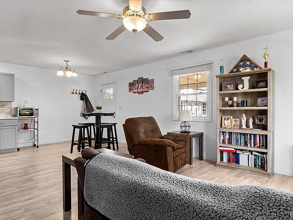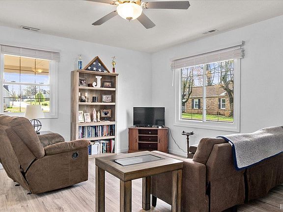 Gorgeous 3 bed 1 bath brick ranch ideally situated on a corner lot! This beautifully updated home boasts a modern and inviting atmosphere with recent upgrades within the past 2 years. Updates include laminate flooring, paint both inside and out, new cabinets, countertops, and a stylish backsplash in the kitchen. There are also new kitchen appliances. You'll love the updated interior doors, exterior doors, and the addition of ceiling fans in every bedroom for comfort all year round. The open floorplan creates a seamless flow between the living, dining, and kitchen areas, perfect for entertaining guests or spending quality time with family. Outside, the property has a carport with storage closet and a large utility shed that includes electric and loft storage, providing ample space for all your storage needs. Additional updates include a new furnace and central air system, a recently replaced roof, upgraded gutters, and a new water heater, ensuring peace of mind and efficiency for years to come.