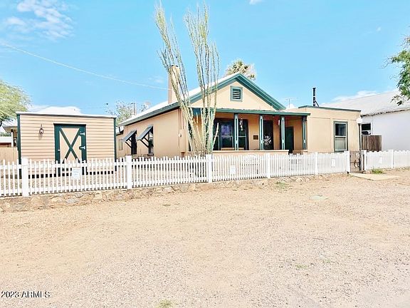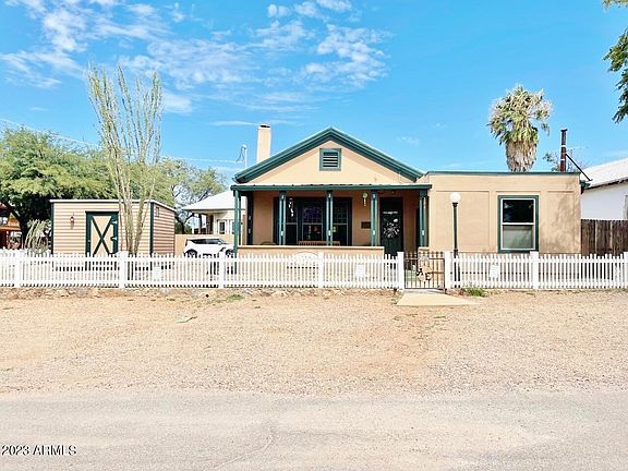 Rare opportunity to own one of the best maintained historic homes in all of Tombstone! The renowned Allen English home was built in 1882 and is on the National Register of Historic Places. English's celebrated style and showmanship in the courtroom not only won him cases but drew in crowds just to watch the ''silver tongued orator'' in action. English soon became the talk of Tombstone, not only for his Courtroom antics, but also for his personal library of over two thousand volumes that was considered to be one of the ''most complete libraries in the West''. This colorful personality was also known to quote Shakespeare and poetry and for his carousing in the local saloons. This home has been kept as a private residence, and per rumor, has never been open to the public. The highlight of the main house is its adobe construction, original hardwood floors and shiplap ceilings. Six original windows feature rope and sandbag pulls. The parlor features original 1882 stained glass windows that Allen English had shipped from Paris, as a gift for his wife. The 1880s original bar, from the notorious Oriental Saloon, was painstakingly brought in, through the side parlor window, in two separate pieces. In the parlor, you will find two original Tiffany chandeliers from the historic Jeff Milton home in Tombstone. The last spot in the main home of particular interest is the original office of Allen English. It is currently being used as a walk-in closet shared by English's original bedroom and the back suite. The home has had two additions since built in 1882, one in the 1960s and one in the 1980s. The current primary suite has a separate entrance of French doors, off the driveway. The 1960s addition also features its own separate entrance, which can be accessed off the front of the home. The current owner has lovingly maintained, restored and made necessary upgrades/repairs to the home since purchasing it. Currently zoned as residential, but can be changed to multi-zoned or commercial. Move-in ready as a permanent residence, vacation rental, or as a combination of both, could be a fantastic business opportunity for new owners. Located across from the Tombstone Courthouse State Historic Park, this home is walking distance from everything Tombstone has to offer. It is a prime location with ample parking, foot traffic and located on the route of the historic stagecoaches. Call today for your private tour of this wonderful home and be sure to check out the additional documents tab for a complete list of upgrades/repairs, and list of regular scheduled maintenance items.