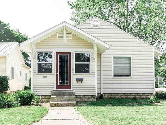 Charming, well maintained, two bedroom bungalow on city's East side. Hardwood floors and vinyl replacement windows throughout. Oak kitchen cabinets. Built in shelving and storage in the living/dining room. Heated front porch. 25'x30' detached garage with an attached shed, 220 service, and shelving. Close to community parks, splash pad, River Greenway Trail and downtown!