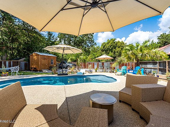 Experience the best of coastal living in this stunning 5-year-old home nestled in the heart of Old Town, Bay St. Louis. Enjoy easy walks to the beach, explore charming shops, savor top-notch dining, and soak in live music and entertainment. This modern home offers open, sunlit spaces, a beautiful kitchen, custom tile work, and seamless indoor-outdoor flow. The home features an outdoor oasis with a sparkling swimming pool and beautiful palm trees and landscaping—a perfect retreat for relaxation. This home is high and dry and does not require flood insurance. With a detached garage, plenty of parking for boats and RV's and guests, and proximity to all the area offers, this property embodies the essence of coastal living. Make this slice of paradise yours—schedule a viewing today! Seller is willing to include bedroom furniture, washer/dryer, AND contribute $5k toward buyer's closing cost!