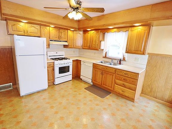 Beautifully updated 2-3 Bdrm, 1 bath, 1-2 car garage home with fenced yard. Stunning fully equipped Eat in Oak kitchen with tray like ceiling, recessed lighting, and plenty of counter top space, & natural lighting. Kitchen includes full length back door that overlooks covered back porch & yard. Dining room could be converted to an additional bedroom or an office. Full bath & 2 bedrooms on main. Nice full bath with corner toilet & tub/shower. Finishable lower level (22x18) includes 22x7 workshop. Garage can house 2 small cars (25'4x10'6).