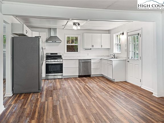 Extensive work has been done to this property to make it like new. This charming cottage features an open living room into kitchen, two bedrooms, full bath and laundry room. Enjoy the butterfly bush out front from the porch swing or listen to the ripple of the river from the back deck. Detached carport and walkway to side entrance for convenience. Property sustained damage from Hurricane Helene. Please see documents for list of work to repair damage.