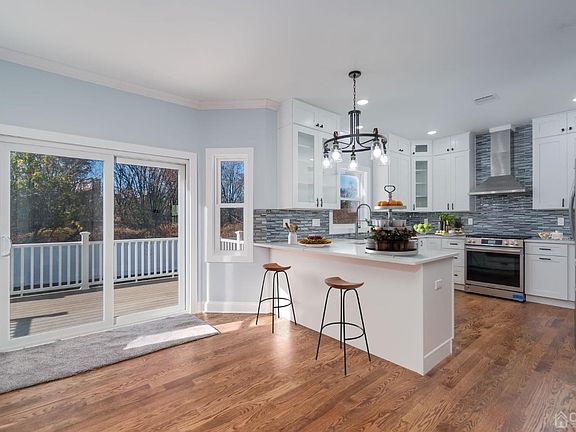 WOW! Brand New Custom Built Colonial on a dead end street. Bevel Glass Entry Door with side lights leads to Formal Living Room and Dining Room with Crystal Chandelier. Eat in Kitchen with Stainless Steel Appliances, Marble Counter tops and Glass Tile Backsplash. Opens to Great Room with gas Fireplace. Sliding door to deck overlooking woods. Grand staircase leads to 4 large Bedrooms. Main bedroom has Spa Shower, Jacuzzi tub, 2 sinks with Marble Counters and Two Large Closets. 2nd Bedroom also has 2 large Closets. Hall Bath has Tub, 2 Sinks and Marble Counters. Full Finished Basement! Rec room/Media Room. Full bath with Tub and 2nd laundry room. Hardwood floors throughout. Welcome Home!! Photos with furniture are virtual.