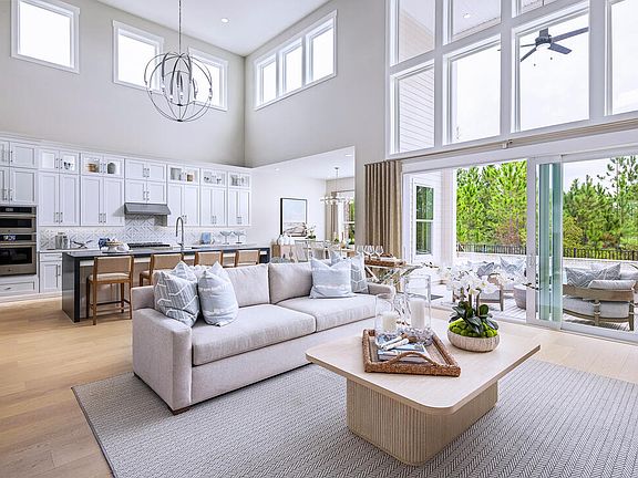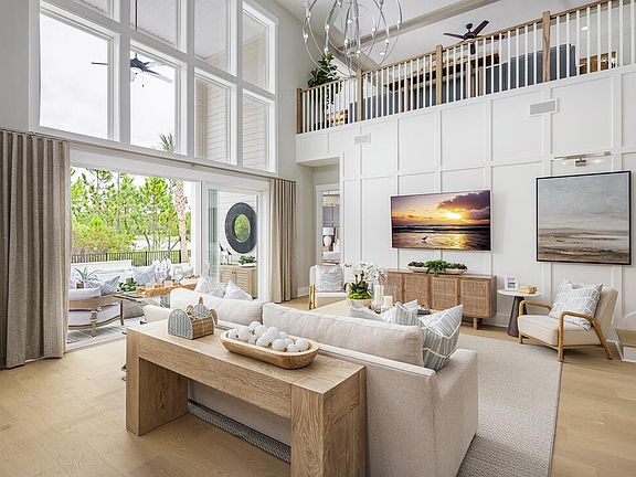 Nestled in a gated community, this grand two-story residence boasts over 20-foot ceilings and an inviting open floor plan designed to impress from the moment you step inside. As you enter, you're greeted by the grandeur of soaring ceilings and an abundance of natural light that fills the home with warmth. The gourmet kitchen is a culinary enthusiast's paradise, featuring stacked cabinets with crown finish, sleek quartz countertops, design tile backsplash, and large island, a space that invites both creativity and connection, perfect for family gatherings or entertaining guests. On the main level is the primary suite, a true retreat offering both relaxation and luxury. With a spa-like bathroom featuring a large tile shower, a separate soaking tub, and two spacious walk-in closet, every detail has been meticulously designed to create an oasis of serenity. This is more than just a bedroom; it's a sanctuary where you can unwind in ultimate comfort. Upstairs, the expansive loft and bonus area offer endless possibilities for your lifestyle, whether it's a game room, home theater, or a second living area. With four spacious bedrooms and 3.5 beautifully appointed baths, this home accommodates every need with elegance and functionality. The office room offers the ideal space for work or study. 3-car garage offers ample room for your vehicles, storage, and more. Step outside the multi slide glass door onto your covered lanai and embrace the natural wood preserve beauty providing both privacy and a tranquil setting. The community is filled with resort style amenities, including pool, clubhouse, fitness center, pickleball courts, tennis court, playground, and a multi-purpose field. Short drive to public beach access, Pier Park shopping, dining and fun entertainment, airport, future FSU/TMH medical campus, future West Bay Center with Publix and recreation outdoor activities at Frank Brown Park. Don't miss the opportunity to make this extraordinary property your forever home, where every detail is crafted for your utmost enjoyment. Construction estimated completion June 2026. Pictures are not of actual home, but same floor plan.