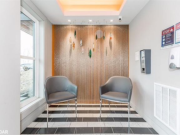 "EXCELLENT INVESTMENT OPPORTUNITY with the "perfect" tenant in place"!!! Large & lovely 1 bedroom suite available in the "Met" at the "Gallery" condominiums. Open concept layout with 9 ft ceilings, walkout to a spacious balcony overlooking forested area. Includes stainless fridge, stove, built-in microwave & dishwasher, washer & dryer. Eat-in kitchen with quartz counters. Good sized in suite laundry/storage room. Bedroom with large window & treed views. Ceramic flooring in foyer, laundry, bathroom & kitchen. Perfect location for commuters with easy access to Highway 400 & close proximity to the "GO" station & Barrie's waterfront. This suite comes with 2 above ground parking spaces and is also wheelchair accessible . Hot water tank is a rental with Reliance, purchaser to assume. Excellent Tenant in place until September 30th, 2021 at $1,550 per month. Tenant would love to stay! Miles of forested hiking trails at your doorstep & access to 11,000 sq ft rooftop patio with views of Barrie's jewel, Kempenfelt Bay.