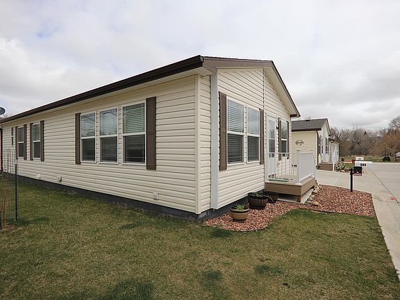 Beautifully remodeled luxury condo in a 55+ community, right in the heart of Buffalo, WY! This spacious 2-bedroom, 2-bathpatio home offers one-level living with a bright, open layout and high-end finishes throughout. The kitchen is a show stopper, featuring quartz countertops, stainless steel appliances, a glass tiled backsplash, roll-out drawers in the cabinetry, and a custom barn-door pantry. The primary suite boasts a large walk-in closet, double sinks with quartz countertops, a walk-in glass shower with a rain showerhead, hand-held sprayer, and built-in shower seat for added comfort. Handrails for anti-fall security are thoughtfully placed in bathrooms, entryways, and exits. Additional highlights include luxury vinyl plank flooring, crown molding, LED lighting, and a convenient wall mount for a large flat-screen TV in the living room. The corner lot offers wrap-around windows with adjustable shades, filling the home with natural light. The oversized garage includes built-in storage, a programmable heater and laundry sink. Exterior maintenance, landscaping, and snow removal are all handled by the Condo Association for worry-free living. Just steps to trails, Clear Creek, the historic Main Street district, shops, restaurants, parks, and more move-in ready and waiting for you! All measurements are approximate.