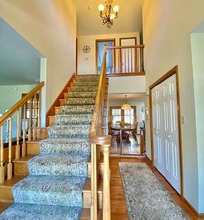 Located in Warwick Schools, this picturesque custom Cape Cod will wow you with a fantastic view, beautiful pool and adjacent covered entertaining areas. Geothermal heat and A/C system, metal roof, solar panels for hot water heater, upgraded 2 200 amp service and In-Law Quarters with private living room, bedroom and bath. Main floor office with built-in cabinets, formal dining room, first floor full bath, laundry, kitchen features granite counters, island with room for bar stools, open to dining area and family room with fireplace. Bedroom and family room in the finished lower level with half bath and a 1 car garage area with overhead door. Also a large shed with overhead doors to accommodate a car or toys. Call today for your private showing!