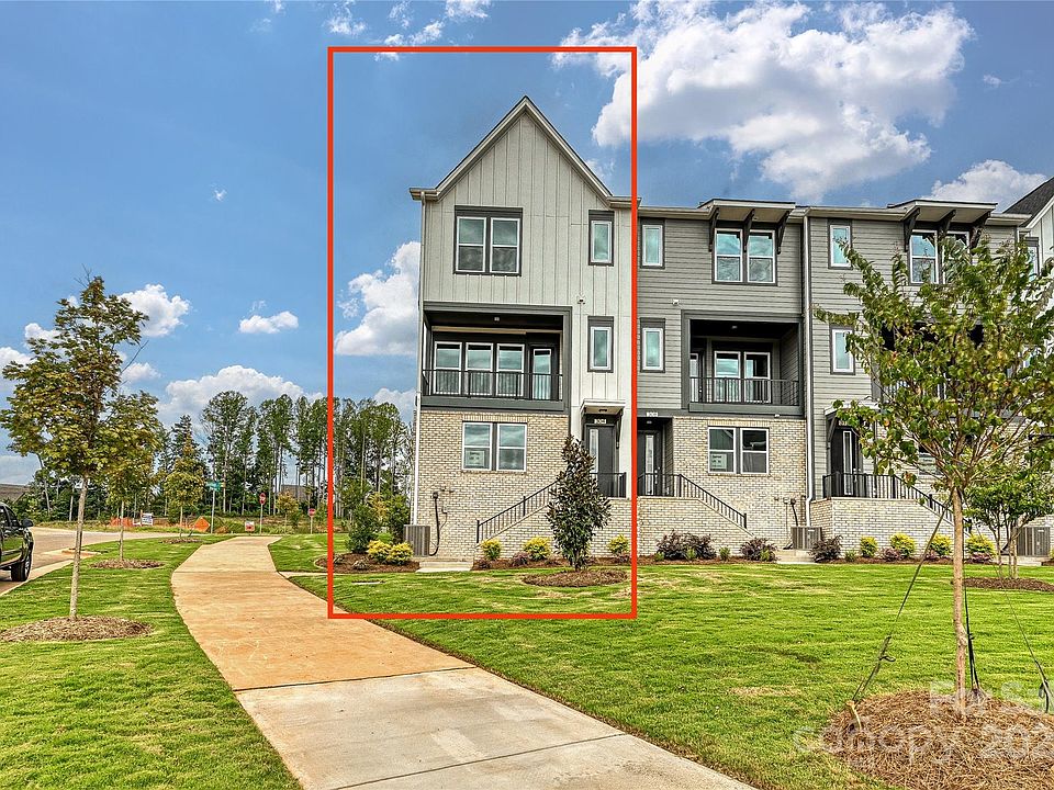Seller-paid 4.99% 30-year fixed mortgage incentive w/ preferred lender – contact onsite agent for details. End unit townhome w/ 1st floor private guest suite w/ full bath & closet. 3 other bedrooms on the 3rd floor. 2nd floor boasts private covered terrace, 10' ceilings & open living space. 9' ceilings are throughout the 1st & 3rd floors. 3rd Floor laundry includes GE 2-in-1 washer/dryer combo & tiled floor. Kitchen has quartz counters, 42" painted cabs, under-cab lights, double trash pullout, large stainless undermount sink, large pantry, GE SS app w/ gas range & refrigerator included. Premier Suite has WIC; Bathroom has a raised-height vanity w/ quartz counters, tiled floor, large tiled shower. 2 bedrooms share a bathroom on the 3rd floor. Guest Baths have quartz counters & tile flooring. Low-maintenance LVP throughout 1st & 2nd floors plus the 3rd-floor hallway. Oak treads on all stairs. Walk to Toby Creek Greenway; close to UNC Charlotte & light rail stops, minutes from IKEA.
