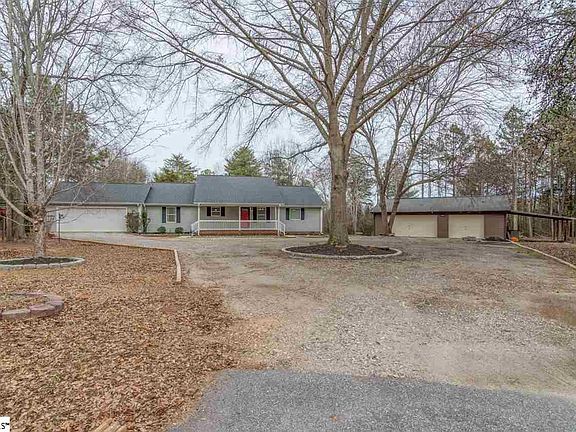 Fresh Air and Room to Spread Out. 3 BR/ 2BA with almost 1.5 acres and NO HOA in the Wren School district. You'll be immediately impressed with your new home as soon as you pull into the circular drive and parking for family and friends will never be a problem. Enjoy the convenience of an attached 2 car garage and the versatility of the adjacent HEATED and COOLED detached 3 car garage & workshop. Wooded lot with large back yard, shed and a newly added dog pen. Newer home should provide its new owners with nothing to do except enjoy. Large master suite includes huge 18X17 bedroom, duel sink vanity, 2 separate closets, and tons of storage space. 7 miles to Easley and 7 miles to I-85 puts you in the middle of convenience and freedom.