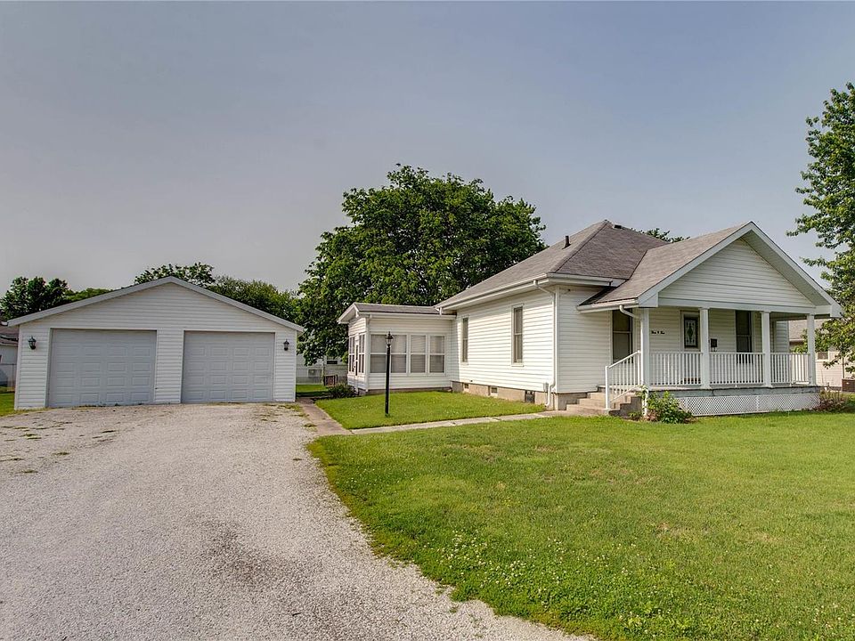 Great home with nice yard, close to high school, parks and downtown commerce. Home features period woodwork, original built in's found in dining area and bedroom area. There appears to be original hardwood floors under the carpet, Seller unsure of condition as they never lived in home. Spacious living and dining area, main floor laundry. Full basement, attached sunroom, detached garage has automatic garage door openers. HOME TO BE SOLD AS IS WHERE IS, as sellers inherited home and never lived there. Additional Rooms: Sun Room