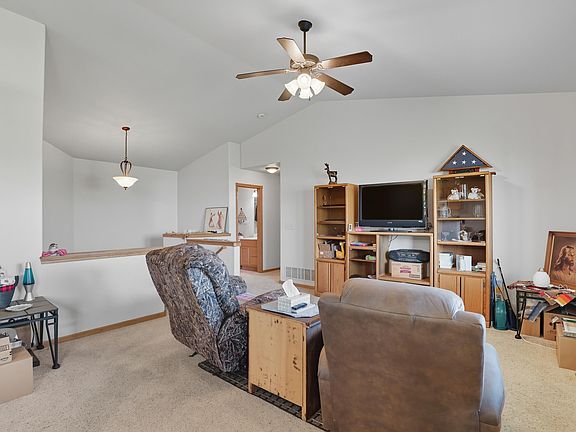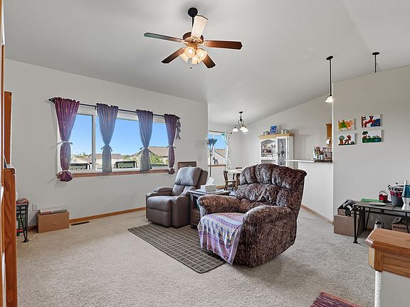 Listed by Lorenzo Bell-Thomas, with CENTURY 21 ClearView Realty, (605) 209-1816. Check out this 2,329 sq. ft., split-level, 4 bed, 3 bath, 24x22 sq. ft., fully insulated 2 car garage home located in Box Elder’s Prairie View Estates. The main level has a primary bedroom with trayed ceiling and dedicated bathroom, an additional bedroom and shared bathroom, and a dining area that has access to partially covered 14x12 deck. Additionally, the kitchen has white appliances (refrigerator, electric stove, mounted microwave, dishwasher), a HUGE pantry/storage area, and laundry area. Downstairs is a 25x14 family room with gas fireplace, patio door walkout to the back yard, 2 bedrooms, a shared bathroom with linen closet, under stair/entryway storage area, and a utility room. This home sits on a .29-acre corner lot with 14 mature trees and a zero-chemical sprinklered lawn with clover mix. Updates include Delta kitchen faucet, Whirlpool Water Softener, Canexl Siding painted, added 26 Gauge Brown Steel Siding (45 yr warranty), Class 3 shingle roof replaced (2019), garage door (2018), water heater (2018), shed, and much more. This single owners property has been well cared for, treasured, and well maintained. They love this home and know that you will love it too! Open house on Saturday from 1-2:30 PM.