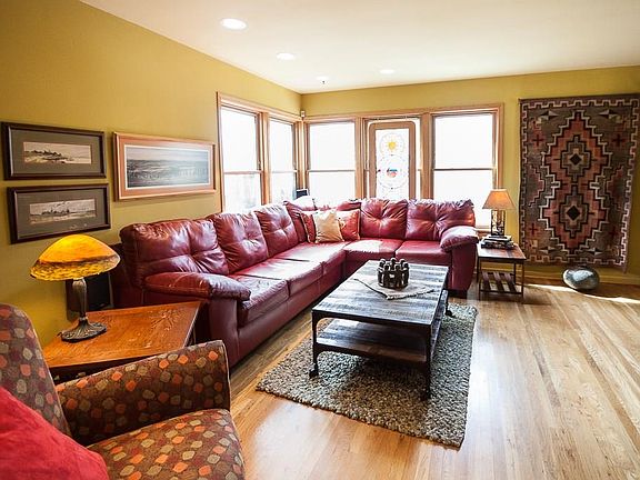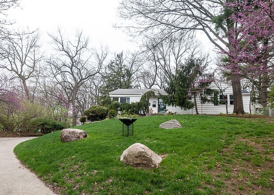 This 1952 Mid-Century Ranch is located South of Grand and nestled on a hill with a very private natural setting. The home backs to woods and features extensive professional landscaping by Ted Lare including a large stone patio and waterfall with boulders, stone steps and many perennials. Inside, the home has an artsy, rustic feel featuring hardwood floors, natural woodwork, a rustic gas fireplace, colorful eat-in kitchen and 2 family rooms. All the windows and casings are newer top-of-the line energy efficient windows. The newer furnace and CA are 92+ energy efficient. The monthly Budget Billing is $159.