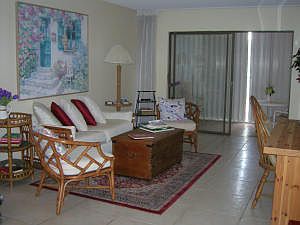Great 2 bedroom 2 bath condo on first floor with views of the Intracoastal from the patio. Tile throughout main area and accordian shutters on the patio. Washer and drying in the unit, and clubhouse and community pool just steps away. Enjoy the picnic area with BBQs right next to the water. The community has a day dock and tennis courts. Shopping and beach nearby also.