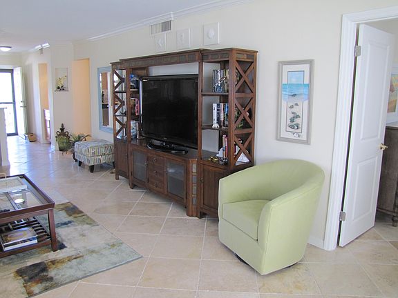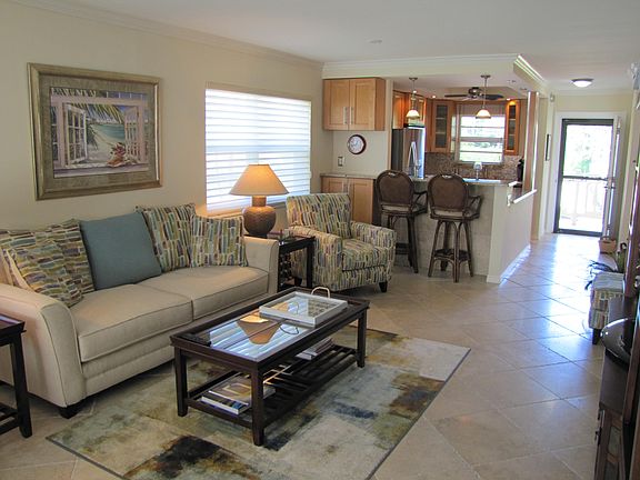 The search ends here. End Unit with views of intracoastal from master bedroom and back porch. 2 bedroom 2 bath. Fully Furnished and completely updated in 2016 simply bring your toothbrush. Hurricane windows throughout including hurricane shutters around your enclosed back porch. In 2016 it was renovated with permits New marble floor, new wooden kitchen cabinets, new stainless steel appliances, new granite counter tops. The list goes on and on. Pet allowed with restrictions. Washer and Dryer not allowed in these units. Public washer and dryer on each level. Amenities include heated pool, tennis, shuffleboard, clubhouse with workout room, day dock with barbecue area. Very socially active community. Walking distance to NPB country club and golf course and Crystal Cove Plaza. Minutes to Beach