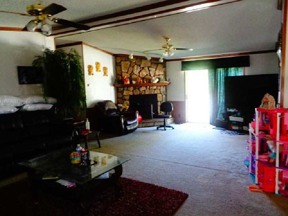 2001 Double-wide Mobile Home w/ shingle roof, sits on 3 city lots. 4 bed/2 bath, apx. 2696 sf, split floor plan, cathedral ceiling, refrigerator, stove, dishwasher, laundry room, CH/A, fireplace, a 36x18 in ground pool & diving board with wood privacy fence, 1 car attached garage, earth shelter, deck, and fenced backyard.