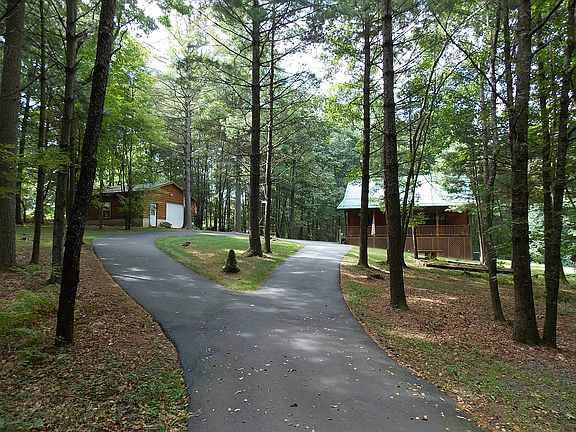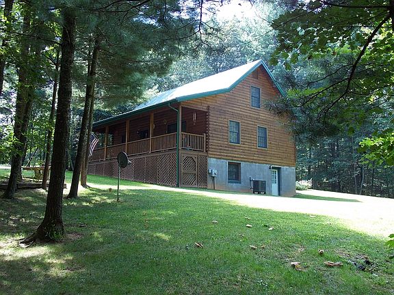 This is a nice Turman Log Home sits on 2.13 acres in Hillsville location just off Highway 52. Main level has great room with exposed beam ceilings, with propane gas logs, in kitchen center island and major appliances, glass washer, main level laundry,large pantry,hall bathroom with new Safe Step jetted tub ! Upstairs is master bedroom, a guest bedroom, and balcony overlooking great room entry. Full basement with plumbing for 3rd bathroom. New Heat pump, covered front porch rear deck, knotty pine throughout house! Very nice landscaping with mature trees and detached log garage with electricity. The property has a nice circle paved driveway. This cabin is perfect for the vacation/getaway or full time residence. This house is in perfect shape move in ready.