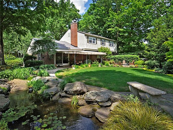 Absolutely beautiful! So many special features. Will not want to miss this one for sure. The most awesome back yard with covered patio, water feature complete with waterfall, fish, firepit and many perennials for your private oasis. Newer wide concrete double driveway has a unique wall with lovely ferns. Great curb appeal. Level entry with covered front porch. Lovely leaded glass doors open to marble entry hall. Newer roof and freshly painted exterior. Equipped kitchen with stainless appliances, breakfast area, and a double sided gas fireplace with brick wall that opens into first floor family room. Master suite has updated bath and is currently used as a super dressing room!! Other 3 bedrooms are light and bright and substantial size. Lower level features hardwood floors, built-in storage with hidden laundry chute. Separate laundry room. A real ten! Private cul de sac location.