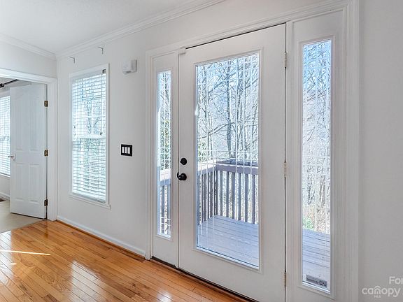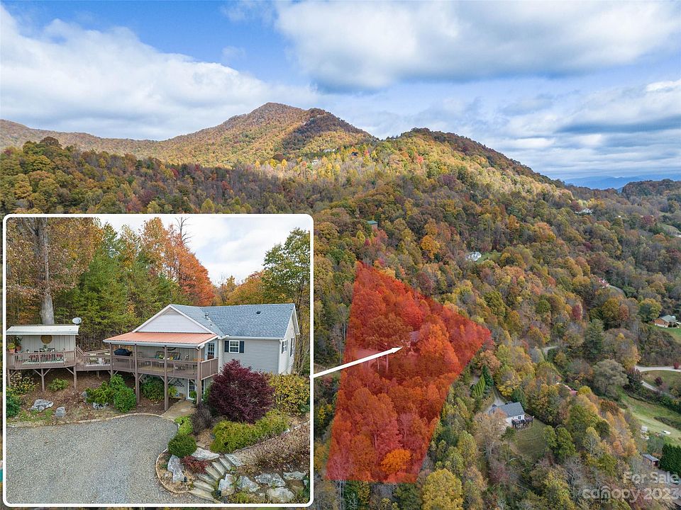 Well-appointed home close to Asheville, Maggie Valley, and Waynesville! Open floor plan with primary suite on the main with two full bathrooms, large walk-in closet, shower, and garden tub. Pre-finished HW in the main living area, oversized living room ideal for entertaining, kitchen island with cooktop and hood, large laundry room and pantry, two additional bedrooms and bathroom on the main level. Full unfinished basement primed and ready for additional square footage. Exterior of the home features amazing, mature landscaping surrounding the home, large, covered porch and additional deck space with a retractable awning all facing out to breathtaking year-round short and long range views of the Great Smoky Mountains. Owners have taken excellent care of the home and many recent upgrades include new HVAC, well water treatment system, driveway pavement, invisible fencing for dogs more!