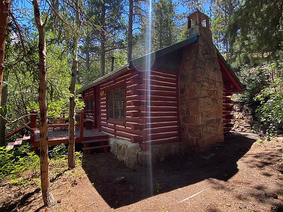 Nestled alongside the tranquil banks of Willow Creek, this charming log cabin exudes a timeless appeal. From its enchanting exterior to its meticulously crafted interior, this retreat boasts captivating woodwork and a rustic rock wall fireplace, seamlessly blending nature's beauty with cozy comfort. The kitchen area features a wood-burning stove and comes fully equipped with appliances and furnishings. Recent electrical updates. The powder room provides ample space for either a composting or incinerator toilet. Immerse yourself in the serenity of nature, surrounded by Roosevelt National Park, yet conveniently located just a short drive from Rocky Mountain National Park. Close proximity to various hiking trails, including Wild Basin, Fox Creek, Saint Vrain, and Finch Lake .For added convenience, amenities such as a pizzeria/tap house and the Old Gallery of Allenspark are nearby, while communal filtered drinking water is available next door at Crystal Springs. Estes Park offers public showers and lodge facilities for a nominal fee.