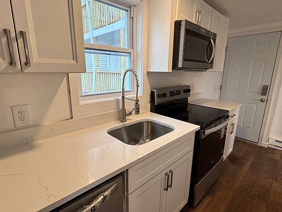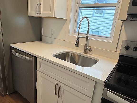 Quartz countertopsNewly updated bathroomFresh vinyl flooringBrand new kitchenStainless steel appliances