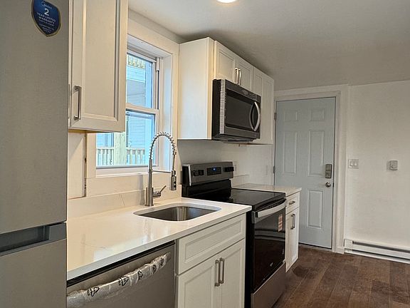 Enjoy modern updates throughout the apartment, including: Brand New kitchen with new white cabinets, quartz countertops, and stainless steel appliances including a dishwasher. There is also Fresh vinyl Flooring throughout the entire apartment. Newly updated bathroom with new shower, vanity, toilet, and light fixtures and a bright, clean and comfortable living space.