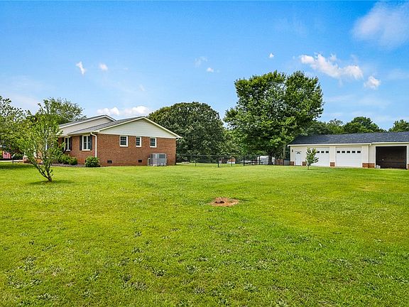 UPDATED on a .79 acre lot with fenced-in yard!! New 30-yr architectural shingle roof & 3 year old heat pump. This brick ranch home welcomes you with it's oversized rocking chair front porch. Inside, you will love there is no carpet with beautiful hardwood floors in the living area and all bedrooms and tile in the bathrooms. The kitchen has been completely remodeled with luxury vinyl tile flooring, new cabinets to the ceiling, stainless steel appliances, farmhouse stainless steel sink, and granite countertops. The bar opens to a spacious dining area that leads to a NEW 16x14 Trex deck with aluminum railing, perfect for entertaining. Inside there is a large living room and hallway to 3 bedrooms, hallway bathroom with tiled shower with jetted tub and double sinks, laundry room, and a full bathroom in the owner's bedroom. The house has beautiful smooth ceilings throughout, modern moldings, new LED lighting, and new interior doors. In the back is an oversized 3 bay detached garage with multiple 50 and 15 amp outlets throughout - a DREAM for anyone with toys or hobby. The lot goes beyond the fenceline in the back (see pic). This house had a full home inspection on June 30. Call for inspection details and repairs seller is having completed. Be sure to click on the VIRTUAL TOUR LINK for a more in-depth view of the home.