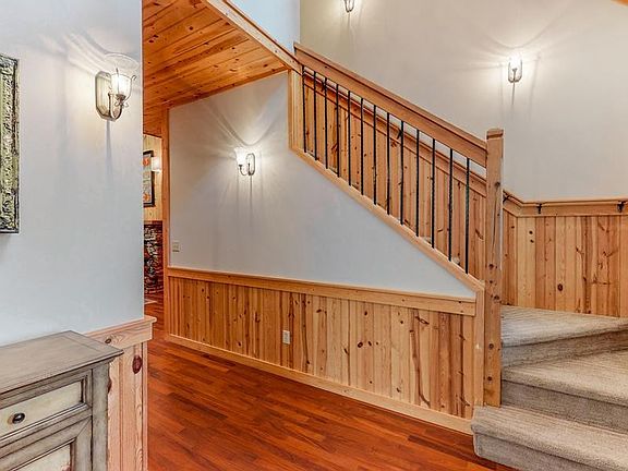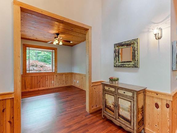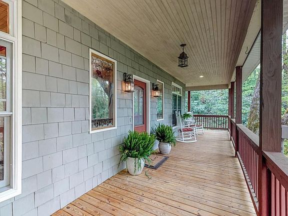 "Picture perfect" is the perfect description for this well maintained home within an easy walk to everything Highlands has to offer. Located on a quiet cul de sac, it boasts a lovely water feature and stone patio with fire pit that is the perfect spot for gathering with family and friends. The living room has soaring wood ceilings, a stone fireplace, and beautiful wood flooring. It opens to a large, perfectly private screened porch that runs the entire length of the home. The kitchen has granite countertops, stainless appliances, and beautiful wood cabinetry. The main level master suite offers an upscale bath with tiled shower and soaking tub. Upstairs are two private guest suites. The lower level is partially finished and would make a great mother-in-law suite as it has a private entrance, kitchenette, and stone patio.