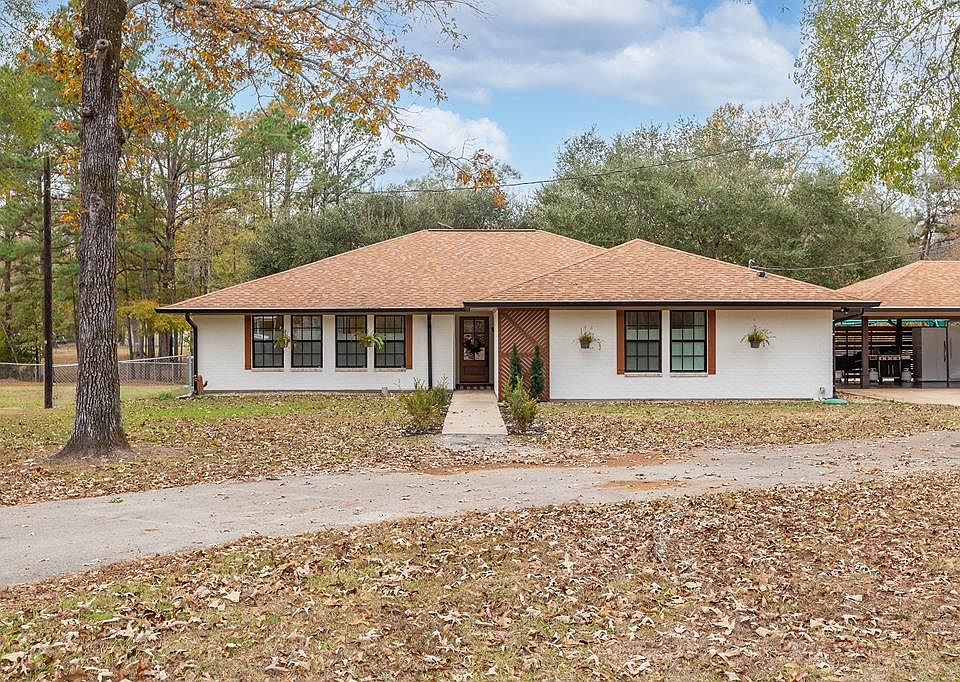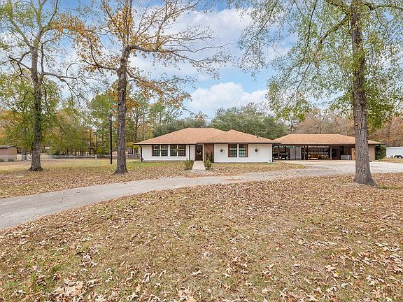 This beautiful single level, all-brick home offers 5 fully fenced acres of pasture, a fully equipped barn with electric & plumbed water, animal stalls & an attached chicken coop. Have you dreamed of raising your own food and animals? If your family is in 4H, FFA, a horse owner, goats or have a milking cow this place is IT! This is your homesteading paradise! The completely remodeled interior of the home features cathedral ceilings, LVP flooring, all new modern appliances. This home has TWO master suites! There is a huge kitchen with custom cabinetry, granite countertops, a farmhouse sink & a breakfast bar. Have peace of mind, this home has been completely remodeled in the last 12 months including; all new HVAC, new roof, new windows, new & updated power panel with a 50 amp plug for your generator or RV, and a new well pump. Crystal clear well water & no city utilities. Located on a no-thru traffic quiet street with a circle drive & tons of parking & only 7 minutes to lake Sam Rayburn!