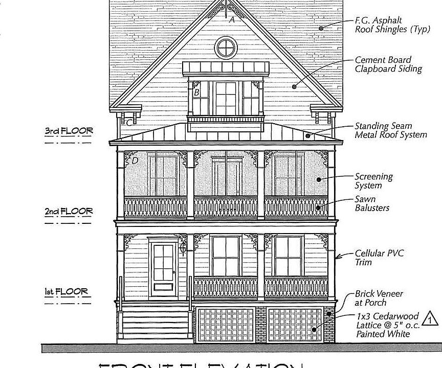 LOCATION! LOCATION! LOCATION! Imagine yourself living across from the historic Chalfont Hotel in the Primary Historic District and just a block and a half from the beach in this spectacular new custom-built home by Lawrence A. Pray Builder, Inc. This 3-story home offers over 3,000 s.f. of living space with an elevator to all floors, a gourmet kitchen with farm sink, stainless steel appliances and a center island with bar sink and wine cooler. Also on the first floor is a full covered front porch, living room with gas fireplace, dining area, pantry, and a powder room. The second floor has a family room with a second gas fireplace, a screened-in porch off the family room, two bedrooms, a hall bath, and the laundry room. On the third level is the Master Bedroom and bath with its own private rooftop deck, as well as two more bedrooms and a hall bath. Outside you'll find a matching shed, a brick paver driveway and walkway, an enclosed shower with brick paver pad, and an irrigation system to maintain the beautifully landscaped property.