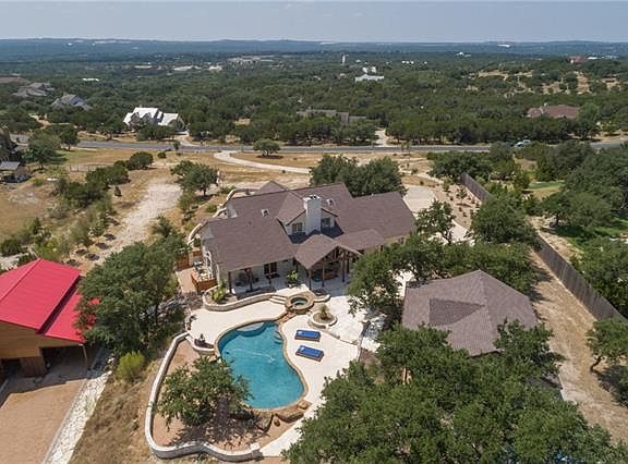 Stunning Hill Country Texas Style Ranch House combines modern elegance & livability w upscale finishes & features. All nestled on 5.16 hilltop acres, fenced & cross-fenced w Ram fencing, large barn for your horses & trailers. Spectacular views from full length covered porches, sparkling pool & spa, FP, & a 24'x36' studio/pool house. Gourmet kitchen w granite tops, cherry wood cabinetry, & Butler's pantry. Great backyard for entertaining w lots of privacy. New Roof in 2015. Absolutely your last stop.