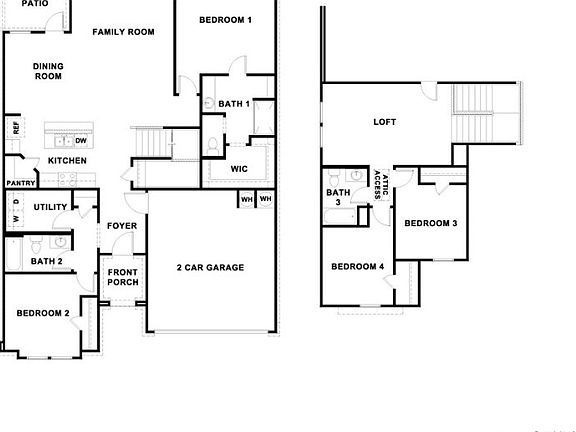 The Midland is a two-story floor plan offering 2,164 sq. ft. of living space across 4 bedrooms, 3 bathrooms and a loft. As you enter the home into the foyer, you'll pass one extra bedroom, bedroom 2, bathroom 2, and the laundry room. The kitchen is open to the dining area and family room. The kitchen features granite countertops, stainless steel appliances, a walk-in pantry, and a large kitchen island. The main bedroom, bedroom 1, is privately located at the back of the home, just off the family room, and features a spacious bathroom and large walk in closet. Upstairs you will find an open loft or game room space, perfect for family time. Also upstairs are two secondary bedrooms and a full bathroom. This home also includes a covered patio, professionally landscaped and irrigated yard complete with Bermuda sod. This home includes our HOME IS CONNECTED base package.