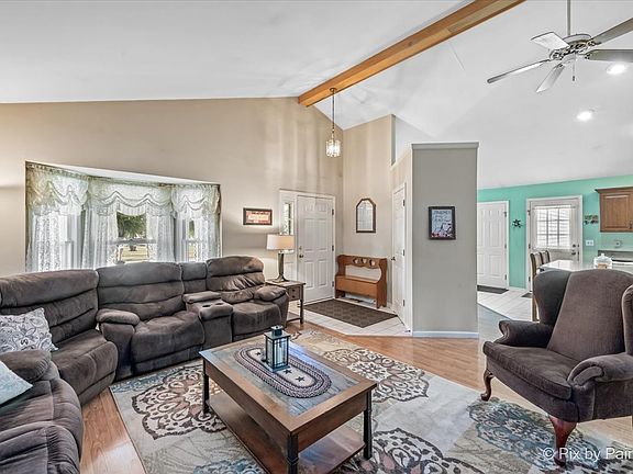 Open concept 4 bed, 2 bath ranch home with vaulted ceilings throughout the main level and a full, partially finished basement. Fabulous curb appeal and welcoming front porch! Open concept eat-in kitchen with a large island, 42" cabinetry, Corian counters, ss appliances with access to the private patio. Large living room and separate dining room. Sizeable primary bedroom with ensuite full bath and walk in shower. Two additional bedrooms and another full bath complete the main level. The lower level has an office, bedroom, laundry and storage. Attached 2 car garage.