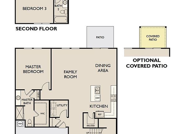 Three bedroom home with loft. Interior features an open kitchen with white cabinets, granite countertops, center island, and walk in pantry. LVP flooring in foyer, kitchen, dining area and baths. The 1st floor primary suite features a walk in closet and additional linen closet. Upstairs are bedrooms 2 and 3 plus a large loft area.